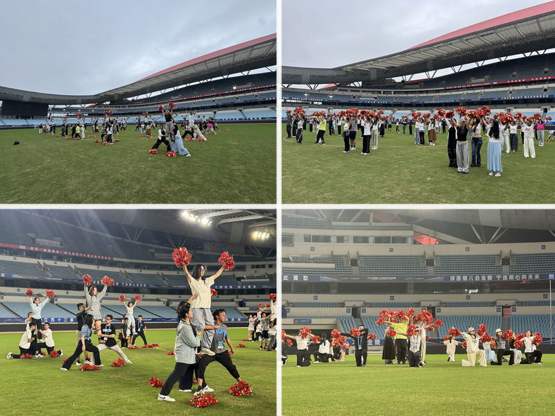 为呈现这场专业水准、艺术张力与视觉美感兼具的表演,从9月下旬开始,参与师生克服课业、时间冲突等重重困难,坚持集训,常常练到深夜。队员们反复打磨托举、跳跃、定点、变阵和队形变换的细节,用汗水浇灌舞台上的精彩瞬间。
