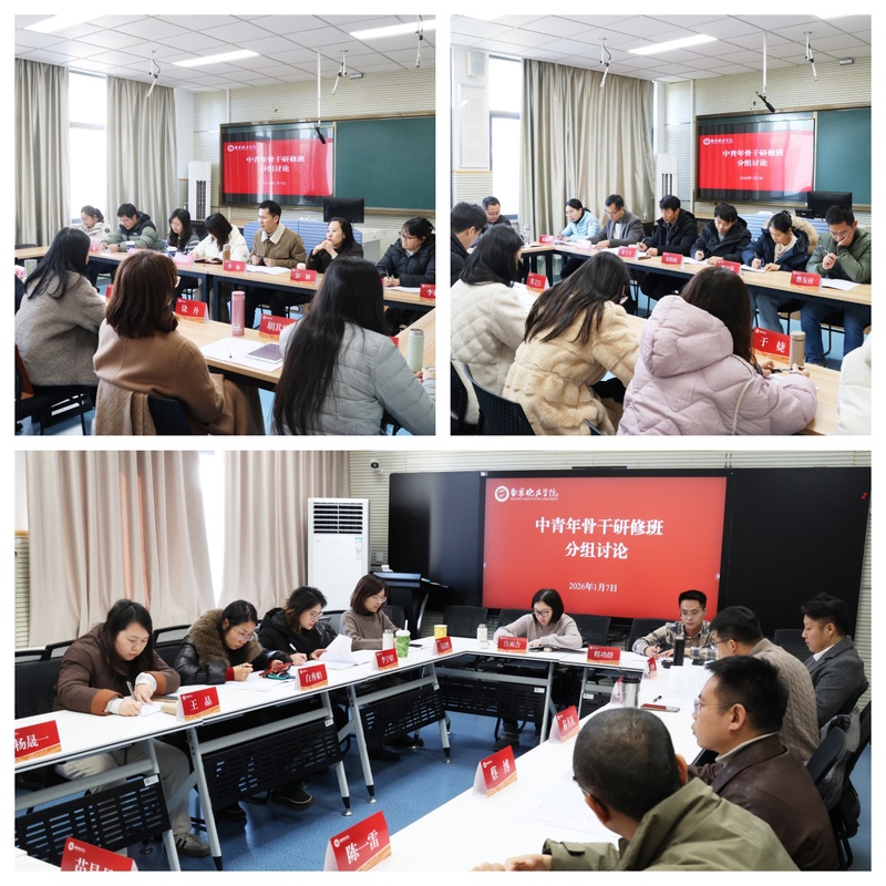 学校纪委副书记、纪委办公室主任倪辉,江苏省教学名师、江南大学教授陈明选,南京师范大学党委组织部副部长王旭杰,南京市委党校教授胡晶晶,分别作了“教师职业成长与纪法规矩”“从知识传递者到智慧引路人:数智时代教师的角色升维 与能力重塑”“加强政治历练,提高政治能力”“创新思维与 领导力提升”等专题报告。南京大学文学院副院长高子文和我校研究生处副处长常直杨分别围绕“高校行政工作与现代精神”“ 学习中服务,服务中成长”主题与全体学员分享干部成长经验。全体学员围绕“如何在‘十五五’期间,立足本职岗位赋 能学校高质量发展”开展分组讨论。